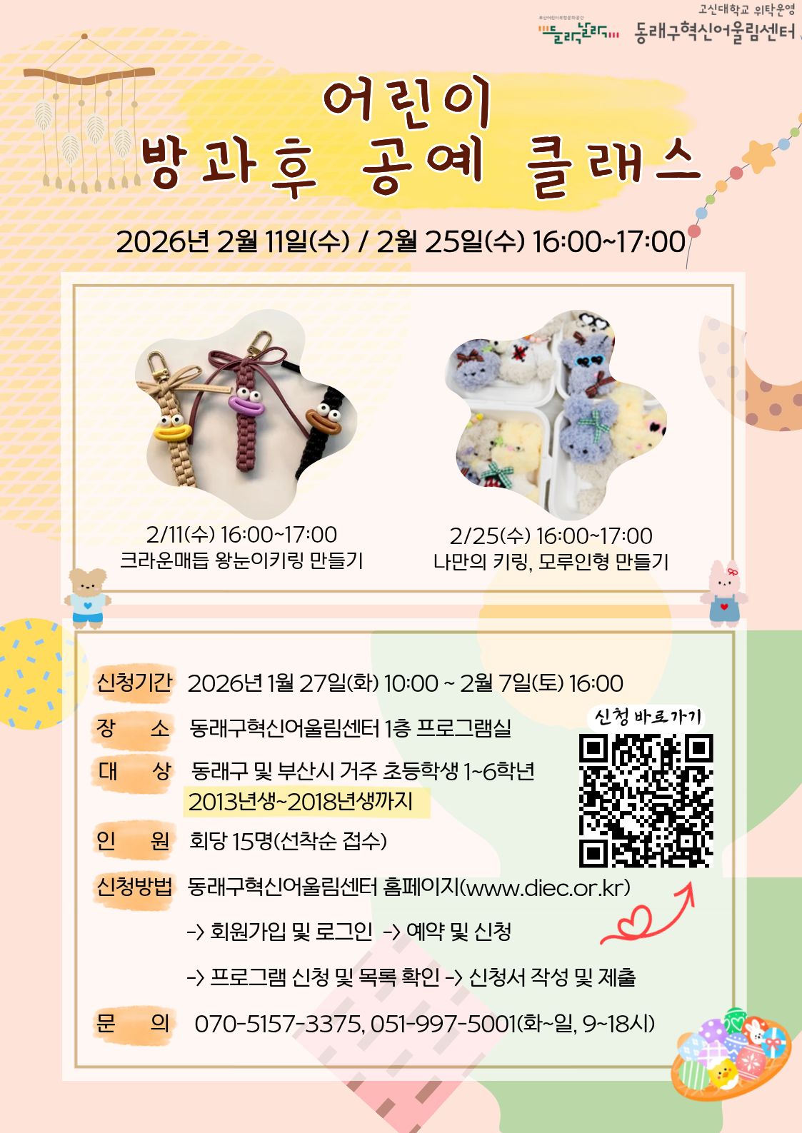 <동래구혁신어울림센터 ‘어린이 방과후 공예 클래스’ 참여 안내>