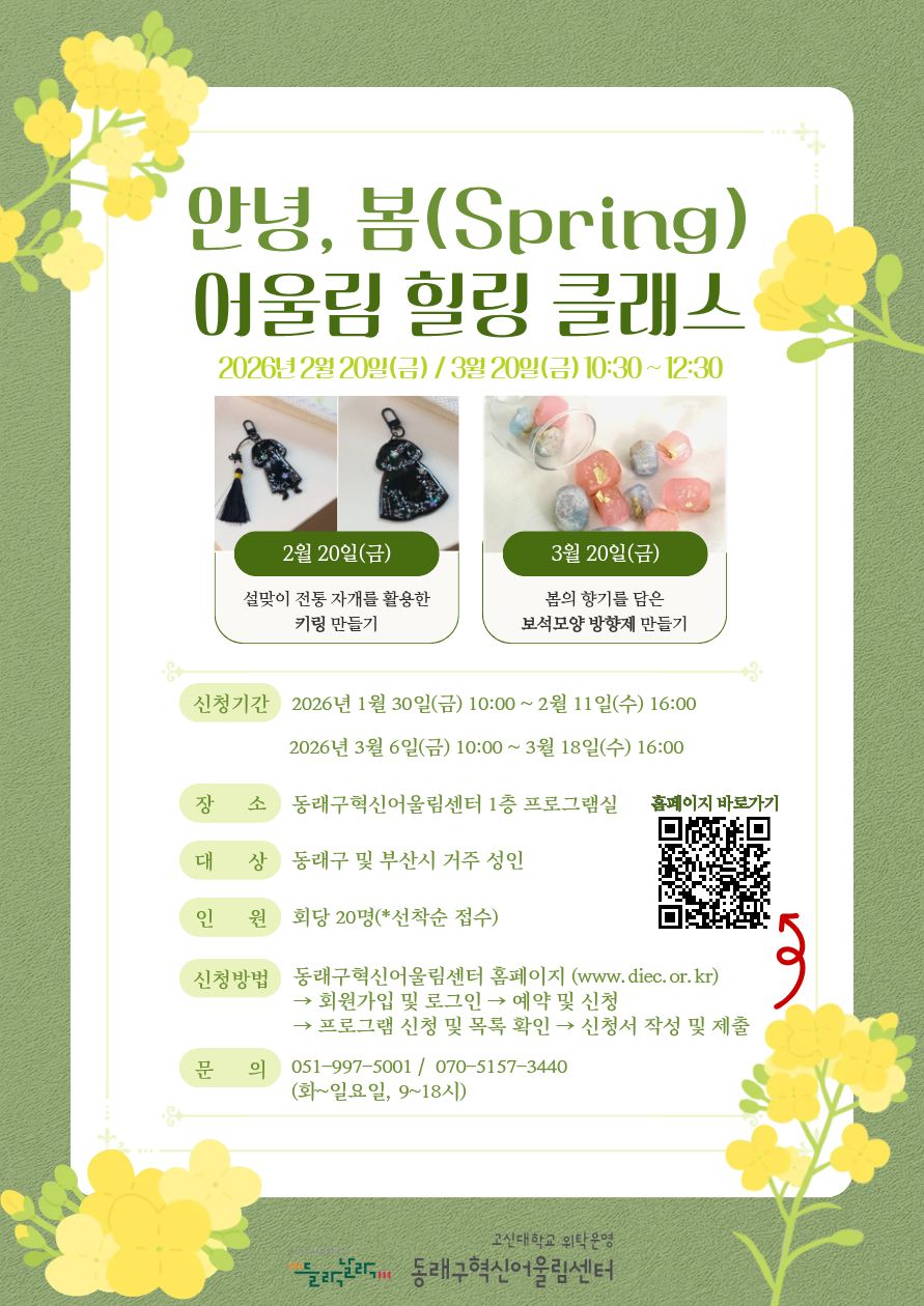 <동래구혁신어울림센터 ‘안녕 봄(spring) : 어울림 힐링 클래스’ 참여 안내>